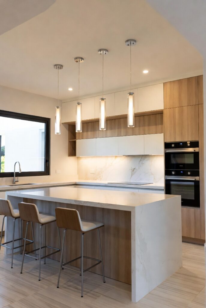 Kitchens now flow into dining and living areas. Islands double as social hubs, workspaces, and cocktail bars.